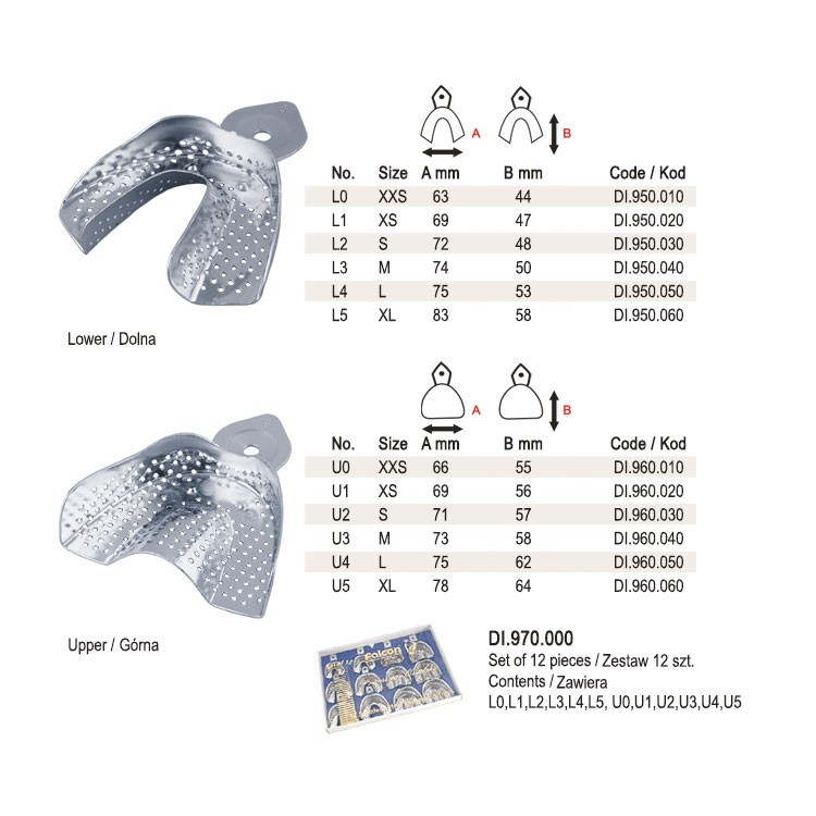 Aluminum Impression trays regular perforated set of 12