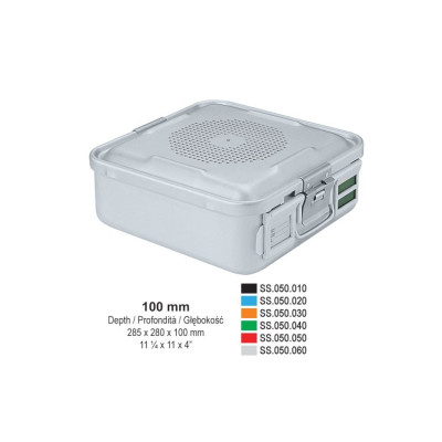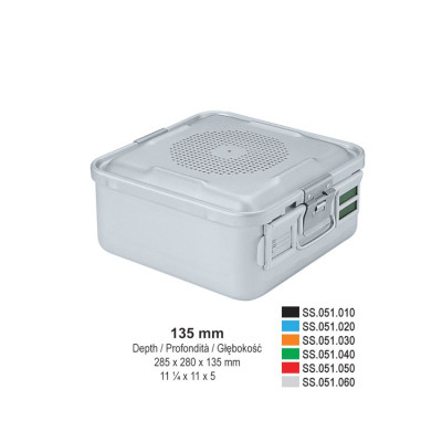 1/2 Falcon container complete with perforated lid + non-perforated bottom, 285x280x100mm, silver