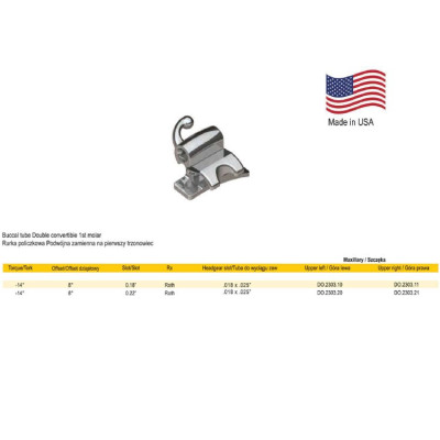 Deluxe Buccal tube combination non-convertible, weldable .022" upper right Headgear tube .045" T -0° O 8° Article: DO.2333.23 0 грн Add to Cart