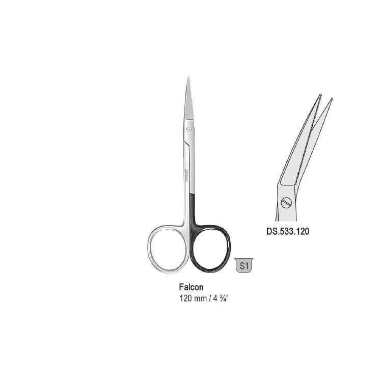 Scissors Falcon angled 120mm, one blade serrated