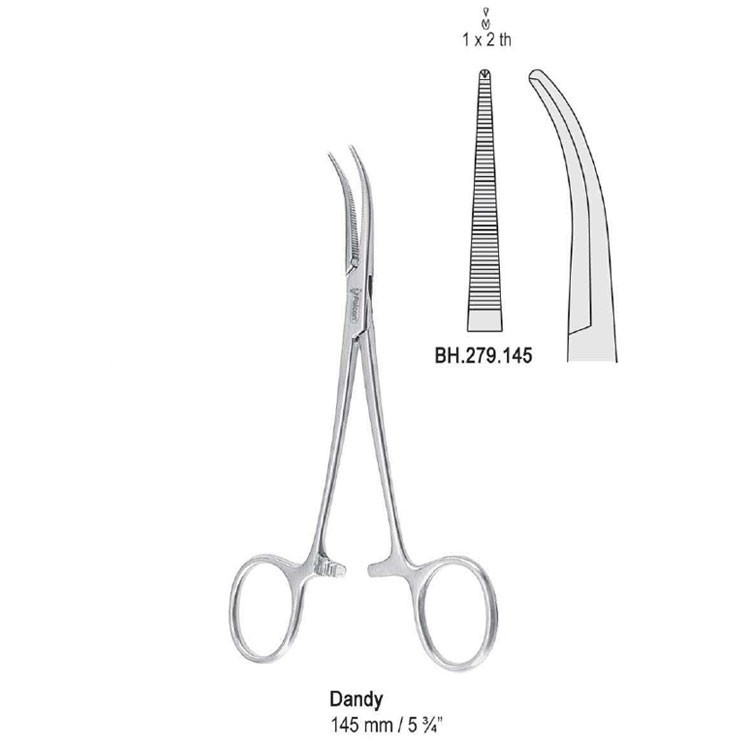 Зажим 145mm гемостатичний Dandy 1x2 вигнута сторона