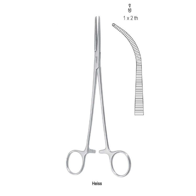 Зажим 205mm гемостатичний Heiss 1x2 більш вигнутий