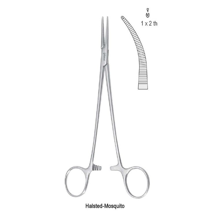 Зажим 210mm гемостатичний Halsted Mosquito 1x2 вигнутий